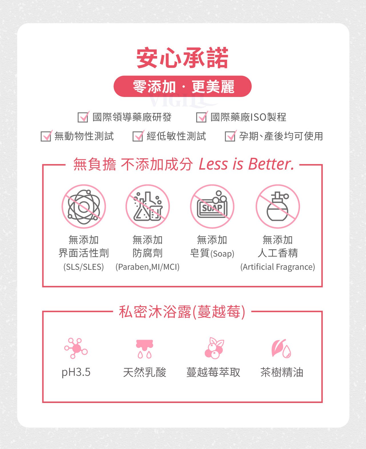 VIGILL is precisely formulated at pH 3.5with natural lactic acid to help maintain this optimal environment.