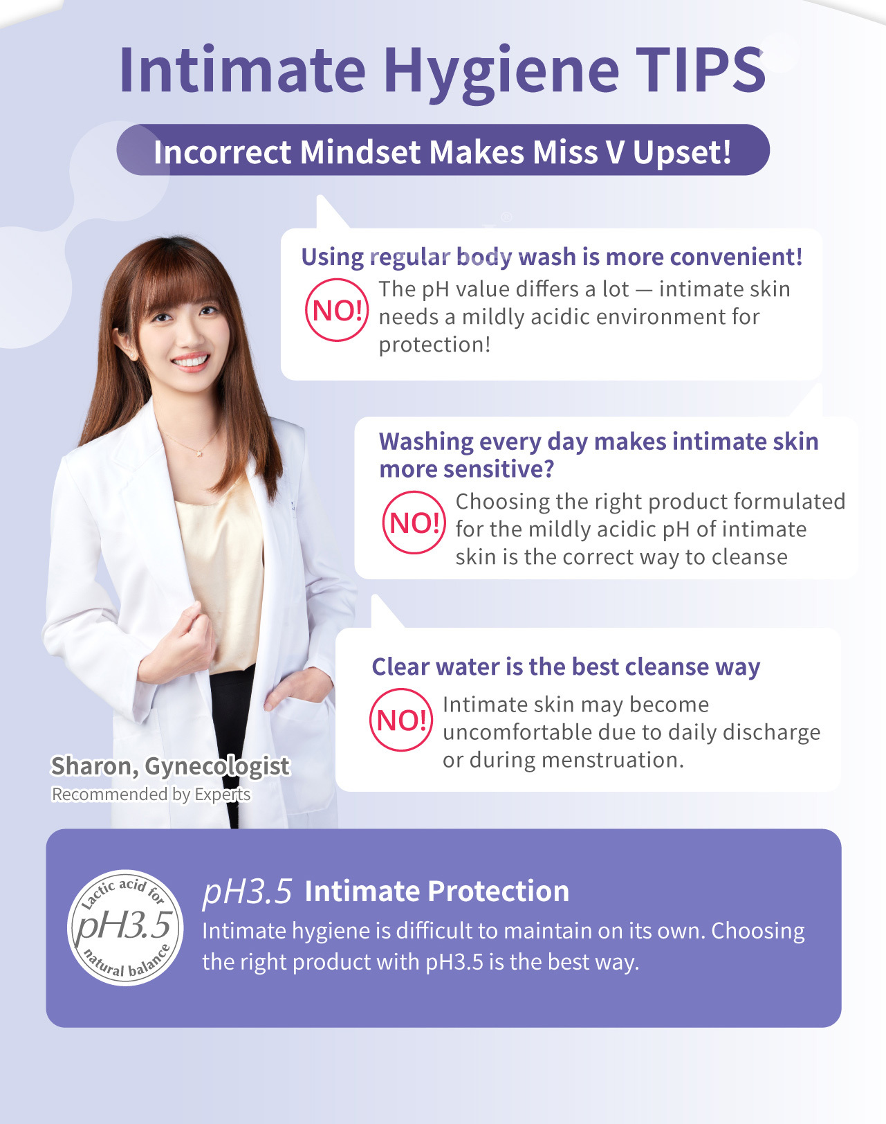 For: Women’s daily intimate hygiene, suitable even during menstruation and pregnancy