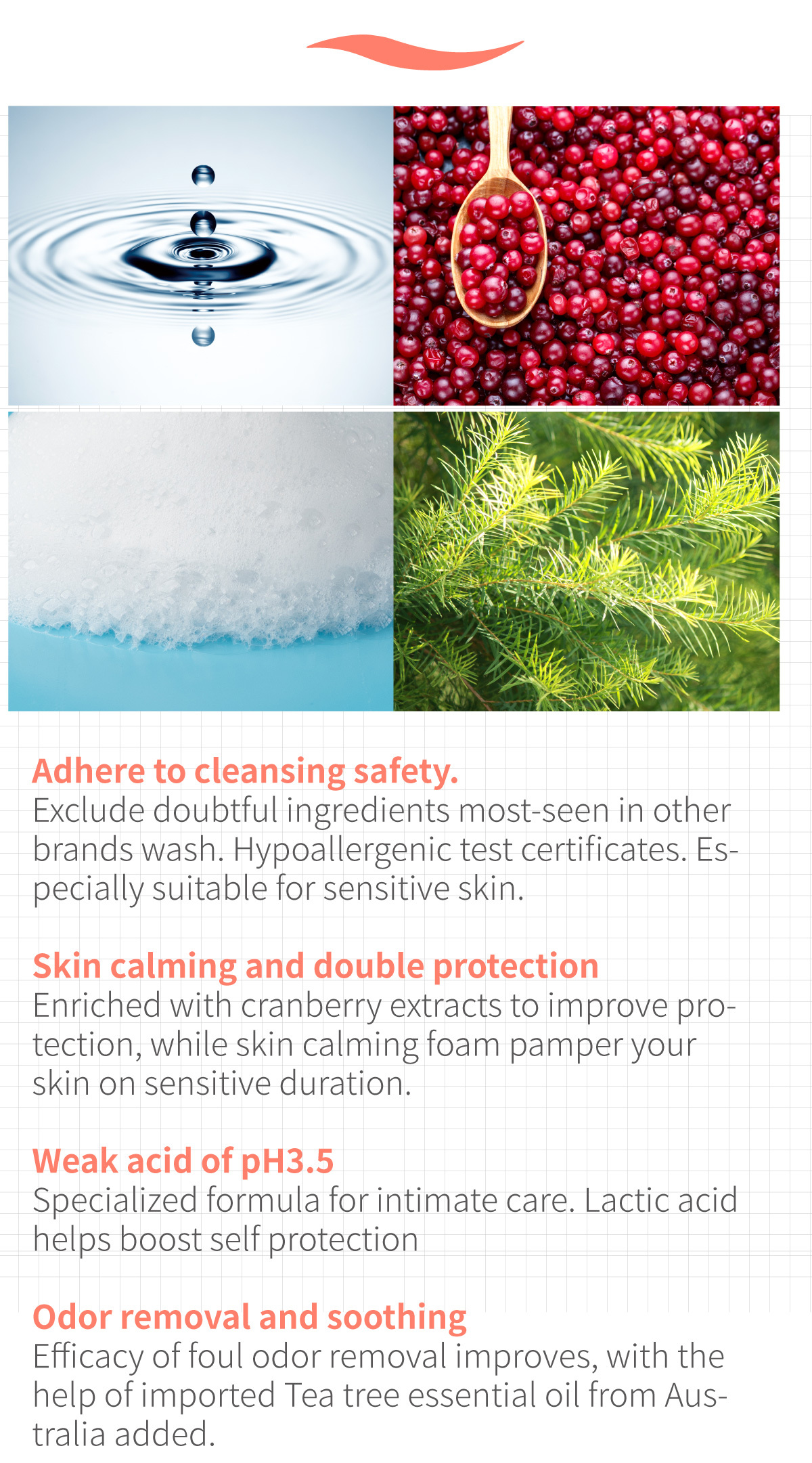Natural Lactic Acid with pH 3.5: Balances intimate microflora.