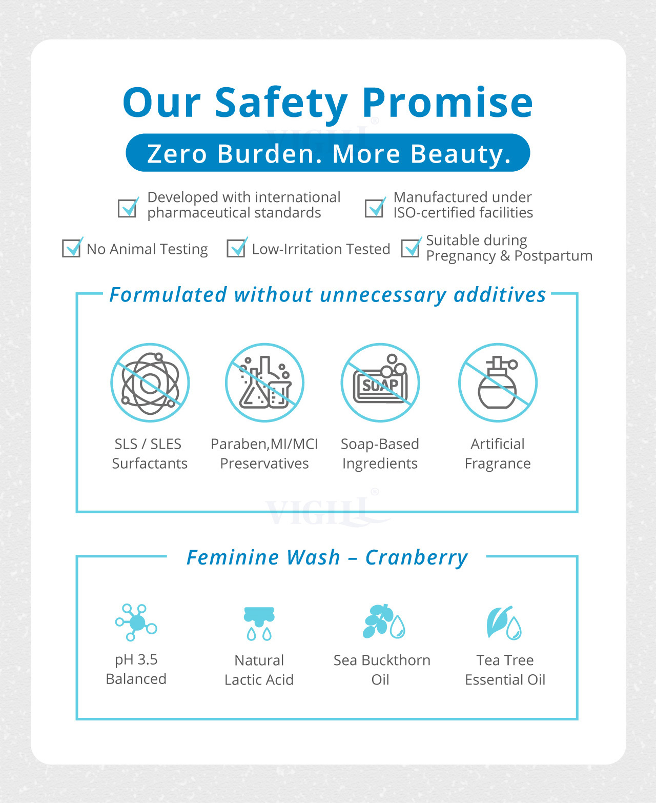 A pH balanced intimate wash is suitable fordaily use and especially beneficial during vulnerable phases.