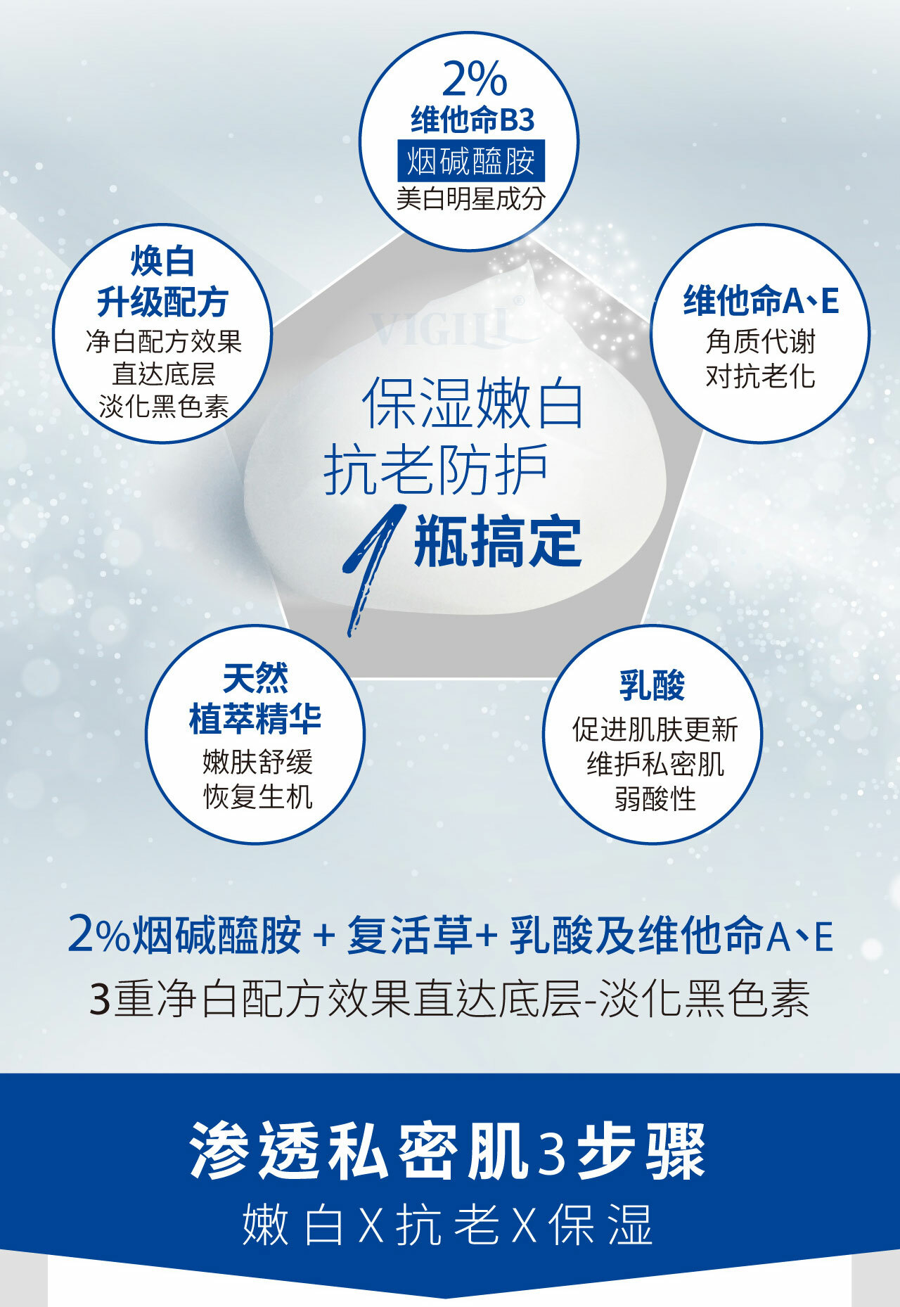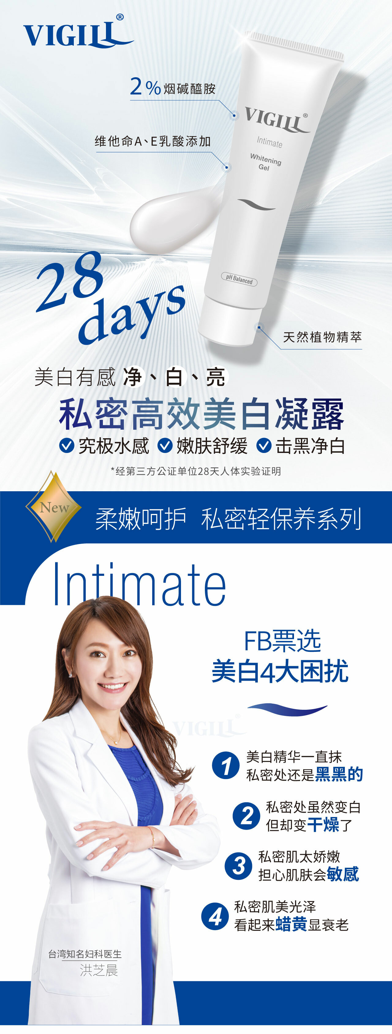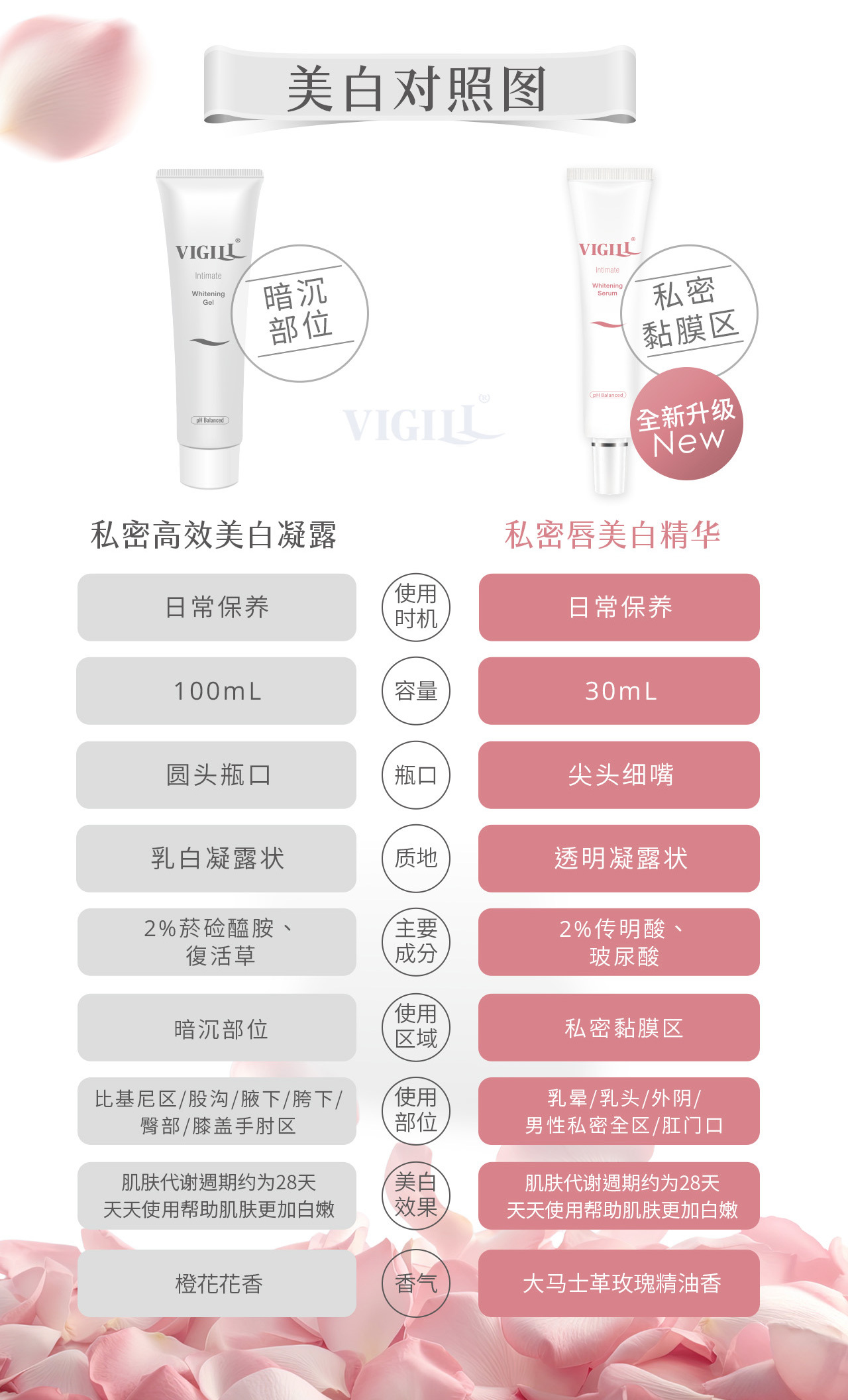 梦想拥有细致白嫩水润动人的私密肌吗?欢迎来到VIGILL,帮助您实现美丽目标。台湾VIGILL在女性私密清洁和美白护理方面拥有 40 年的专业经验。美白产品并通过第三方验证,并在 28 天的人体测试中显示出有效效果。进入VIGILL的世界,揭开无瑕之美的秘密。2件一起买价格更优惠!