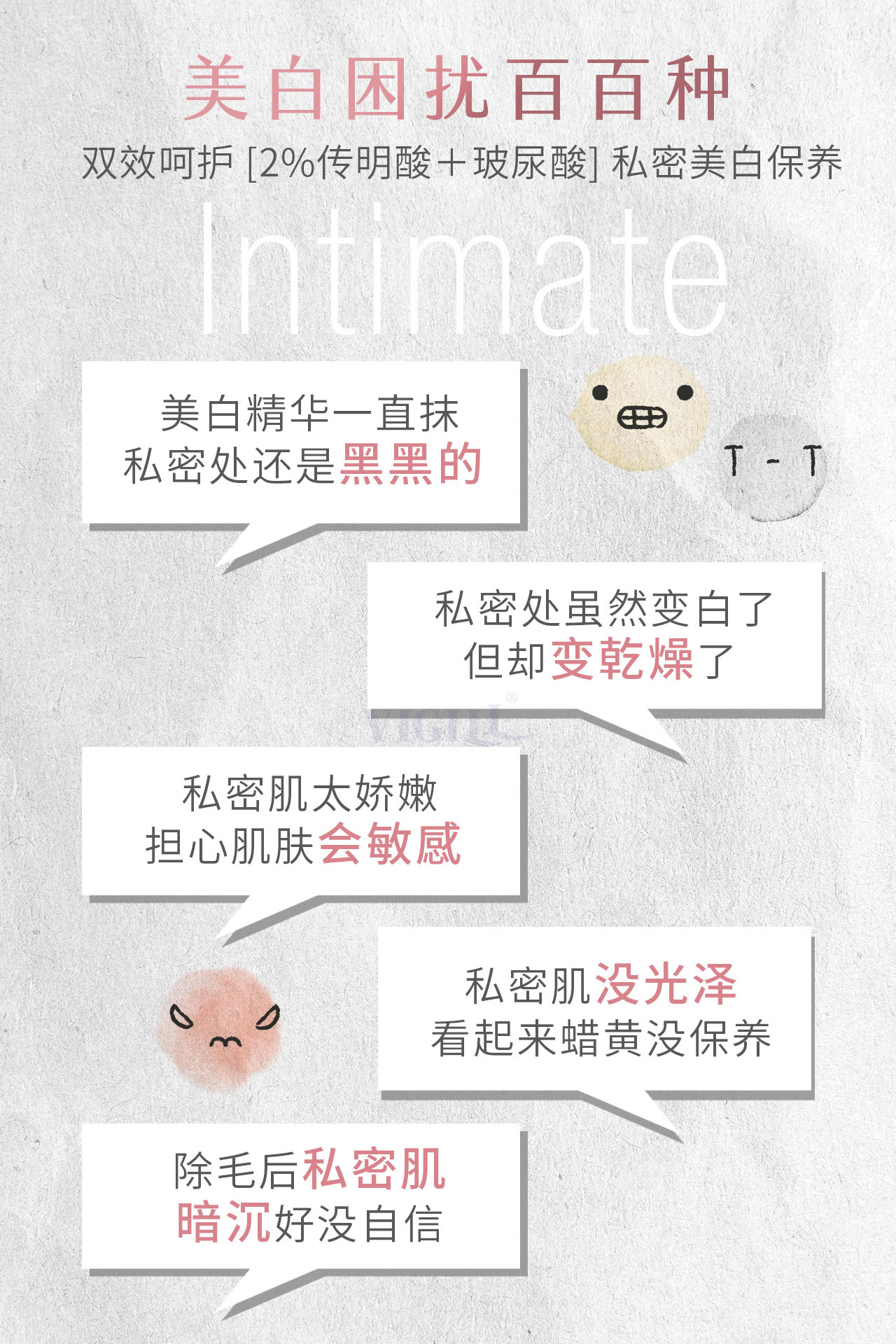 白- 2%烟碱酰胺,兼具肌肤美白与角质调理双重功能,最适合非光照因素的私密暗沉。