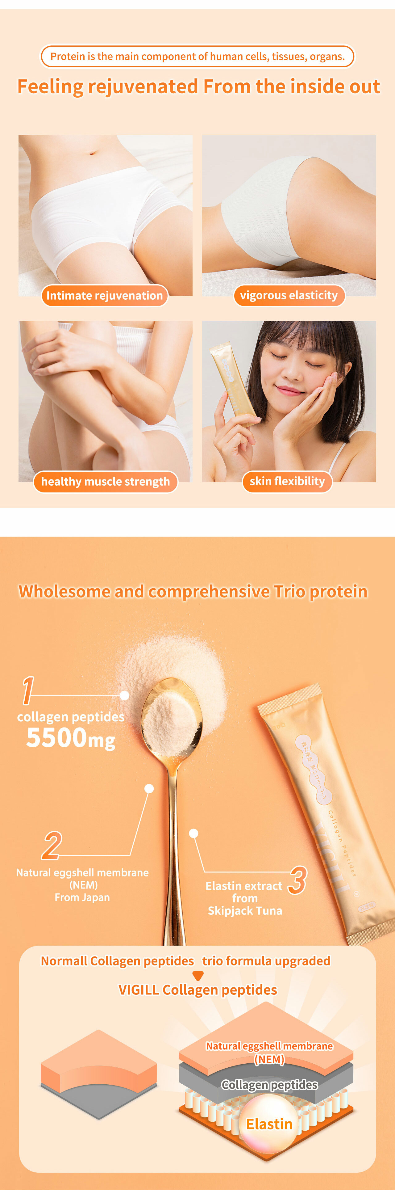 - 三重蛋白帮助恢復肌肤弹性、私密肌青春化