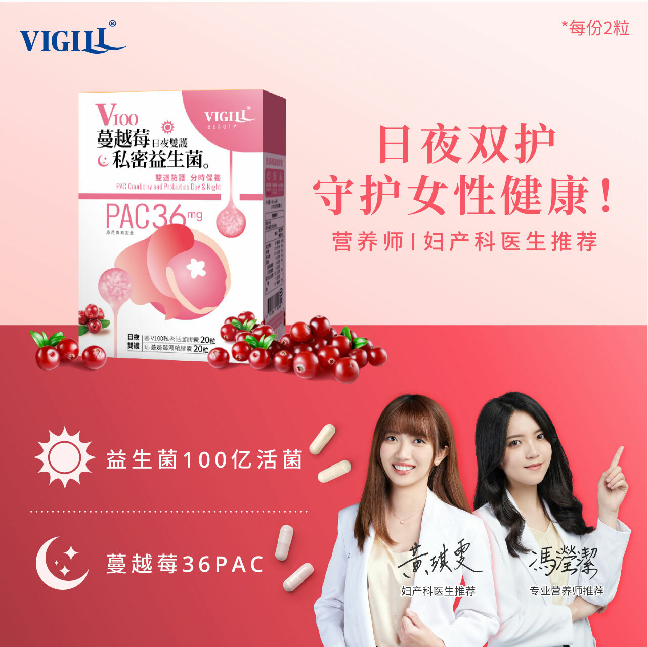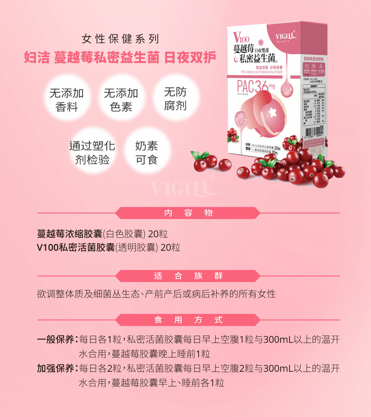 🤎 VIGILL妇洁蔓越莓私密益生菌-日夜双护 20份