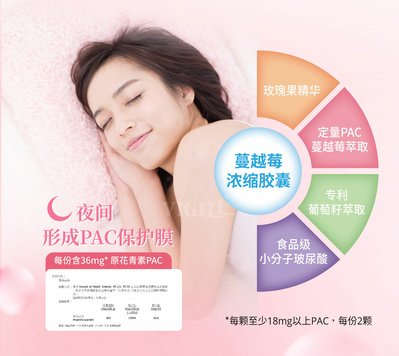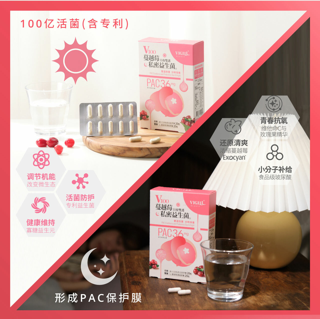 50亿益生菌与36mg PAC蔓越莓强化私密健康。