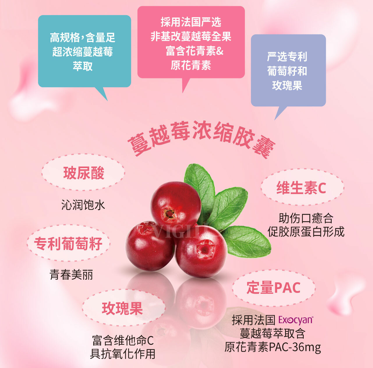 高浓缩蔓越莓-采用250倍原果浓缩法国ExocyanTM蔓越莓,含原花青素PAC-36mg*。