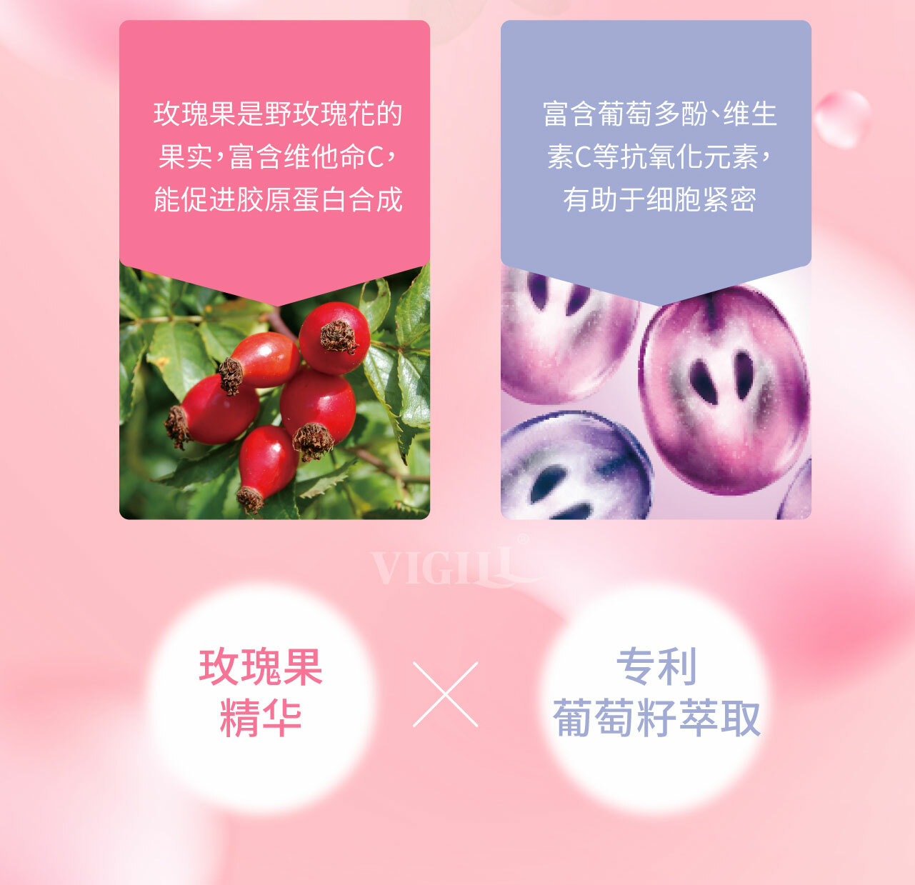 专利葡萄籽+玫瑰果-私密青春补给,维持健康更美丽。