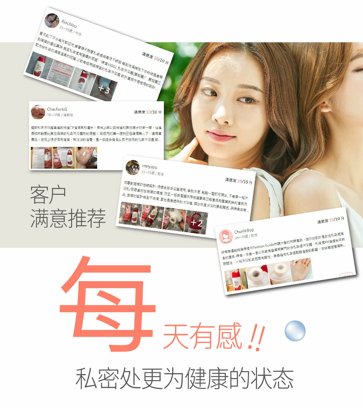 天天使用,特别在经期、孕期、产后分泌物过多与容易敏感时期更需加护清洁。