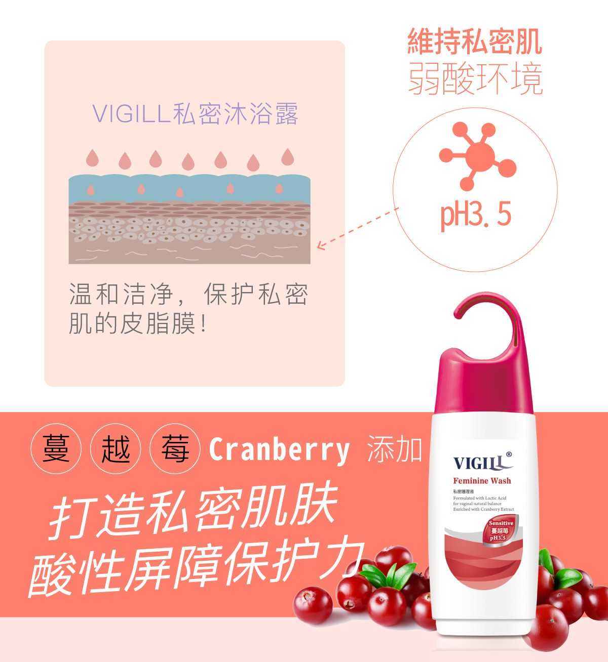 添加蔓越莓精华( Cranberry),能加强私密肌肤酸性屏障保护力能提高私密肌肤酸性保护力。