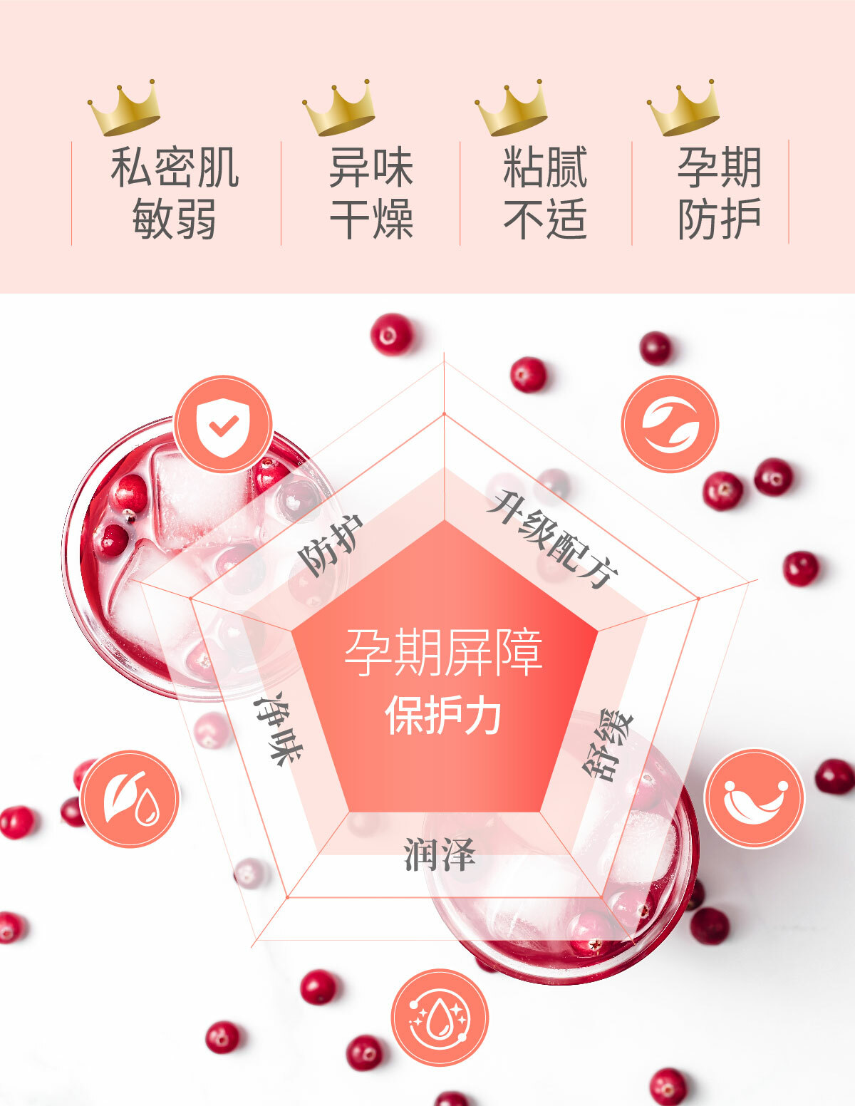 1.蔓越莓精华添加:提升私密肌的保护力